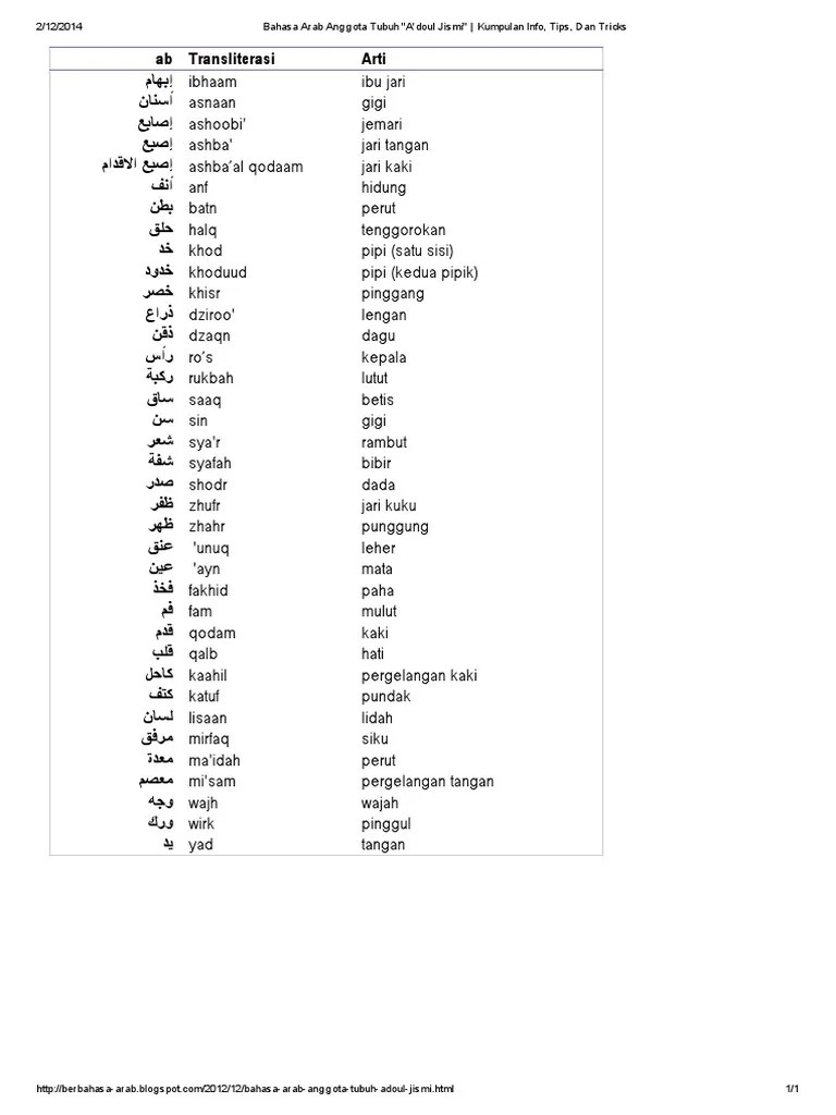 Bagaimana kamu mengucapkan dalam bahasa arab? Untuk bagian tubuh kepala bahasa arabnya adalah رأس rosun. Kumpulan kosa kata anggota tubuh dalam bahasa arab beserta arti dan latin cara.